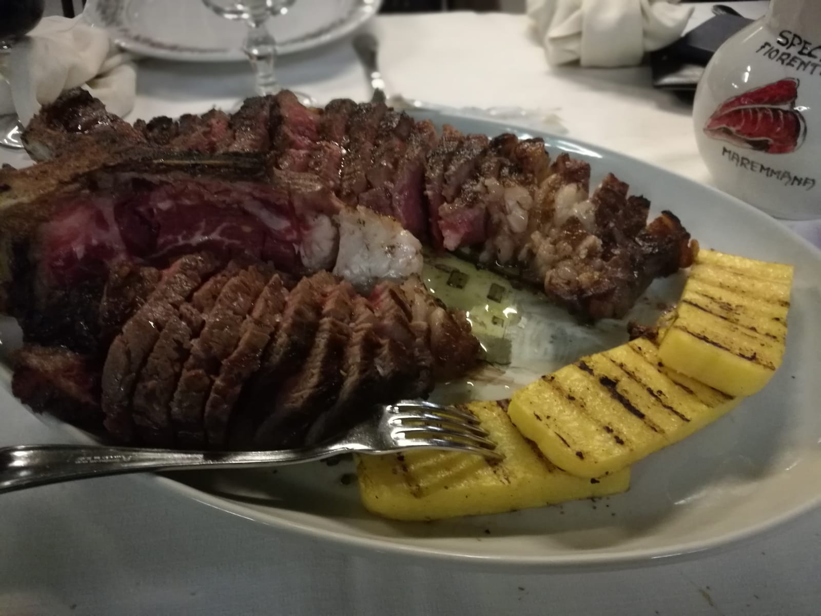 È raro infatti che gli avventori di questo ristorante non vi consumino questo taglio pregiato di carne toscana… Noi non abbiamo voluto essere da meno e abbiamo deciso di prendere il taglio più grande di Fiorentina che quella sera possedevano..quasi 2 kg!!