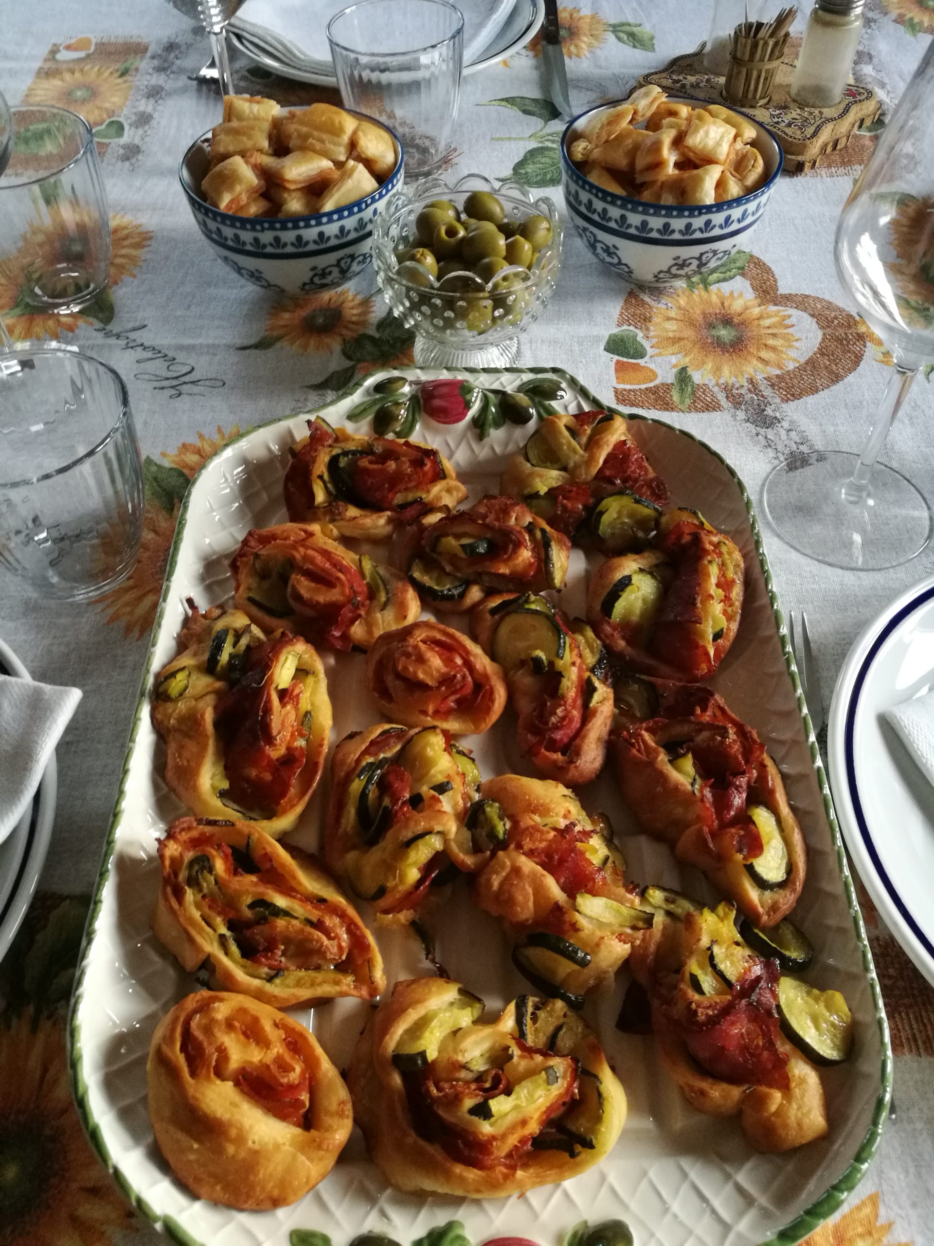 Far cuocere per 25’ a fiamma lenta. Stendere la pasta da pizza e coprirla con le zucchine tiepide e il salame e avvolgerla sul ripieno, sigillando bene i bordi.