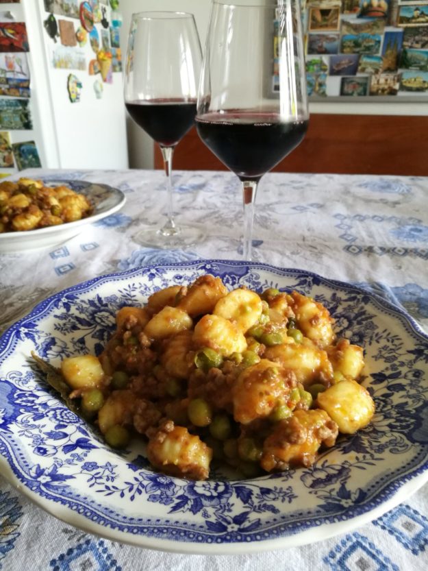 Ingredienti 500 gr gnocchi150 gr ragù150/200 gr di piselli Preparazione In una padella con un filo di olio, accendete il fuoco e aggiungete ragù e piselli (entrambi già cotti).Fate rosolare i 2 ingredienti per 5 minuti.Nel frattempo immergete gli gnocchi in una pentola di acqua bollente salata.Dopo 5/7 minuti saranno pronti..scolateli e spadellateli nella pentola…