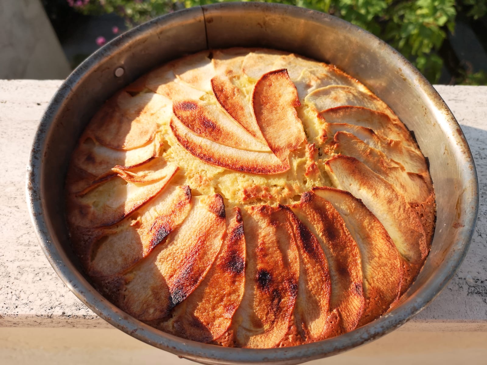 Infornate a 180°C per 40-45 minuti. Una volta pronta, trasferite la torta di mele su un piatto da portata e fatela raffreddare a temperatura ambiente prima di servirla.